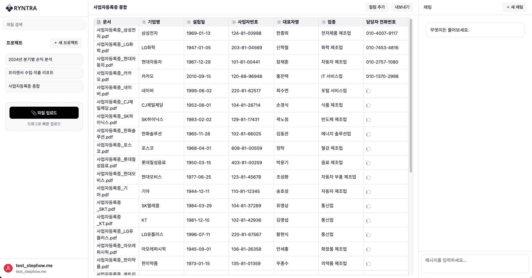 표의 열(Column)에 원하는 항목을 추가하세요. AI가 모든 문서를 읽고 표를 자동으로 채웁니다.