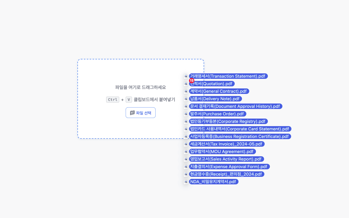 회계·지출 관련 문서를 PDF·이미지 그대로 업로드합니다.