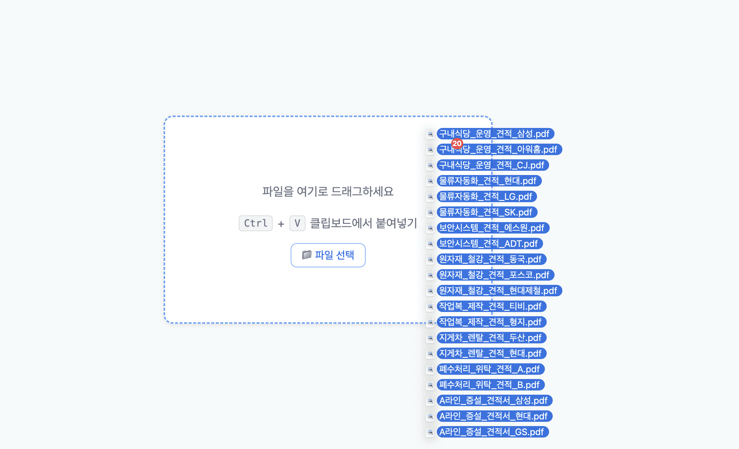 PDF·스캔·이미지 그대로 한 번에 업로드할 수 있습니다.